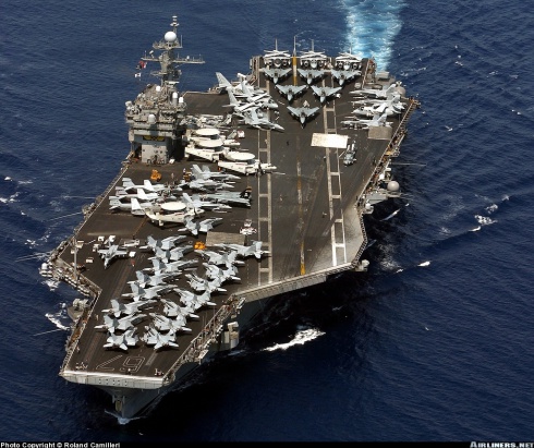 Hace tiempo tuve la oportunidad de subir a bordo de este navío de 82.000 toneladas y más de 5.000 tripulantes, y visitar los hangares, la cubierta de vuelo de más de 320 metros de longitud y acceder a los cockpits de los cazas embarcados (F-8 Crusader y A-4 Skyhawk)