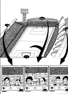Vigilancia de estadios mediante grupos de cuatro videocámaras motorizadas, equipadas con zoom, para visualizar y grabar las imágenes en un solo monitor de forma simultánea.