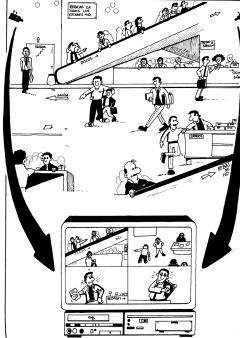 Supervisión de distintas secciones de un centro comercial para vigilancia, mediante grupos de cuatro cámaras, transmitiendo las imágenes al centro de control y visualizándolas en un solo monitor. Su uso podía hacerse extensivo al estudio del comportamiento del consumidor y la eficaz disposición de los artículos exhibidos.